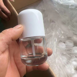 Botella de vidrio cosmética con bomba delicada de escarcha de fondo grueso redondo de 10ml y 30ml para botella de base de esencia con tapa dorada
