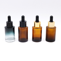 30Ml Amber Clear Frosted Platte Schouder Glas Serum Druppelflesje Aanpassen Huidverzorging Verpakking 1Oz Haar Olie Fles