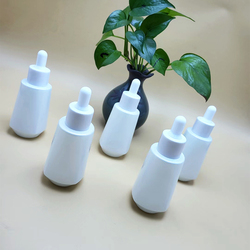 30Ml Frost Flat Shoulder Glazen Druppelfles Met Witte/Zwarte Druppelkappen Voor Cosmetische Etherische Olie Of Serum