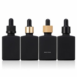 1Oz 30Ml Vierkante Matzwarte Glazen Druppelfles Rechthoekige Baard Etherische Olie Glazen Druppelflesjes