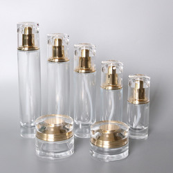 15 мл 30 мл Роскошная прозрачная стеклянная бутылка с толстым дном с золотым воротником и золотистой/серебристой крышкой для косметики упаковочные контейнеры