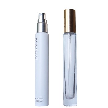 ขวดสเปรย์น้ำหอมแบบปั๊ม ขนาด 10 มล. 1/3 ออนซ์ ขวดแก้วใสทรงยาวเพรียวบาง ผนังหนา ทรงกลม/ทรงเหลี่ยม สำหรับบรรจุน้ำหอม